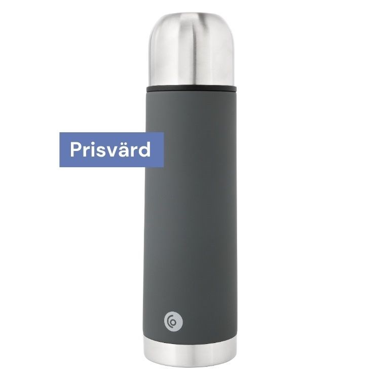 Pris: 120 kronor Vikt: 322 g Material: Rostfritt stål Storlek: 25 cm x Ø6,8 cm, rymmer 0,5 l Temp efter 6 h: 78 C Köpinfo: clasohlson.com Kort & gott: Populär termos som är prisvärd. Håller värmen lagom för en dagstur. Bra att man kan köpa till lock som isolerar bättre. Kalla fakta: En ståltermos med vakuumisolering, ska hålla dryck varm åtta timmar och kall i 20 timmar. Automatkork i plast som kan bytas ut till vanlig skruvkork för längre värmehållning (den får köpas till). Locket kan användas som kopp. Finns i storlek om en liter också, samt som termosmugg men då med snäpplock. Flera färger. Maskindiskas ej. Hiss eller diss: Liten termos med greppvänlig yta. Strålen är något skvättig och konstruktionen mindre robust, men den klarar falltest. Värmehållningen är kortare än hos mer avancerade modeller – men till ett pangpris. Automatlocket gör den lätt att öppna. Släpper inte ut värme när du häller, men läcker mer värme över tid än skruvkork. En enkel och snygg termos – kul med flera färger! Plus: Väldigt bra pris, lätt och smidig. Minus: Automatlocket isolerar sämre och klurigare att diska.