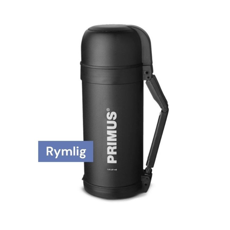 Pris: 499 kronor Vikt: 848 g Material: Rostfritt stål Storlek: 26,5 cm x Ø11 cm, rymmer 1,2 liter Temp efter 6 h: 81 C Köpinfo: primusequipment.com Kort & gott: Rymlig mattermos för flera portioner – perfekt för familjens soppa, pasta eller gryta. Locket fungerar som trevlig skål eller kopp. Kalla fakta: 1,2 liter termos i 18/8 rostfritt stål med vakuumisolering. Ska hålla maten varm i sex timmar. Pulverlackerad yta för bra grepp, handtag på sidan och lock som kåsa. Finns även i 1,5 liter. Ej maskindisk. Hiss eller diss: Stor och tung termos som blir otymplig i en ryggsäck – ingenting för en fjällvandring. Men en given följeslagare när familjen eller vännerna ska ut och äta färdiglagat. Den lite skrovliga ytan är pulverlackerad, vilket gör att man får ett säkert grepp även med handskar. Vid test av värmehållningen överraskar den – efter 12 timmar är soppan fortfarande önskvärt varm. Den fungerar också för glass och blir en perfekt stor skål för hela familjen att äta ur. Den är enkel att handdiska tack vare stor öppning. Plus: Otroligt prisvärd, bra värmehållning. Minus: Efter ett fall lossnade handtaget, men termosen fungerar än dock bra.