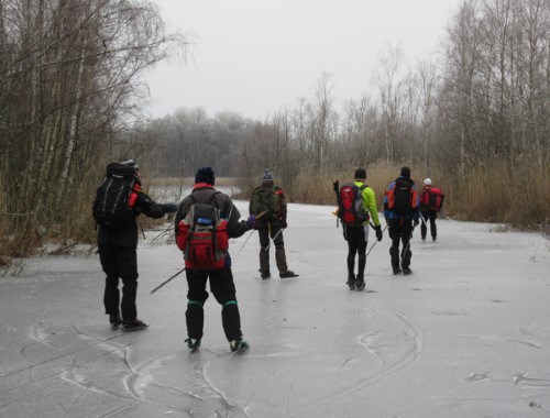 14/1 Hönstorpasjön, Storsjön, Lundsbolssjön. Ett tunnt snöskikt täckte isen som var något hindrande men isen var fin att åka på. Storsjön var bara åkbar i den östra delen. Vi såg många bäverhyddor och bäveravverkningar samt vid två tillfällen överflygande havsörn. 12 åkare åkte 18 km.