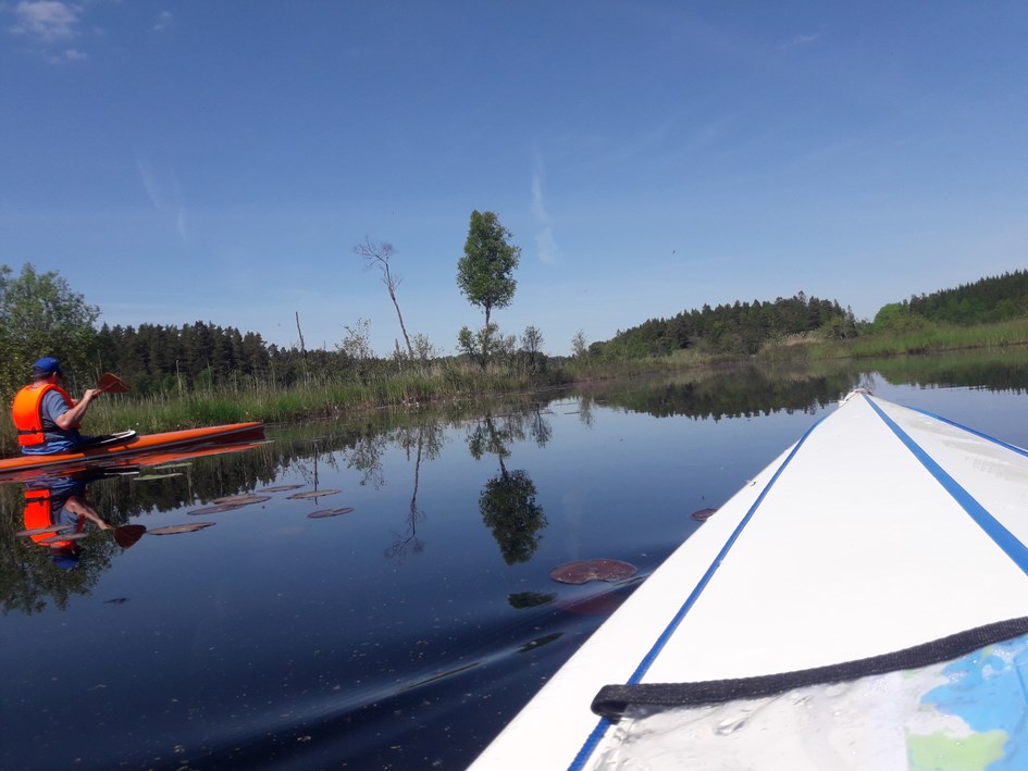 Ett litet sittunderlag på kajakens botten är skönt att vila fötterna på under paddlingen. Risk för skavsår på hälarna annars!