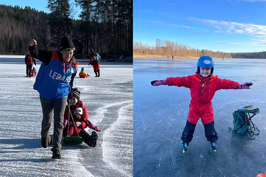 Vi lär oss vilken utrustning en skridskoåkare behöver ha och kastar livlinor för att ”rädda” varandra. Det ska bli spännande att prova vår slängkälke och är det mycket snö, hjälps vi åt att bygga en iglo.