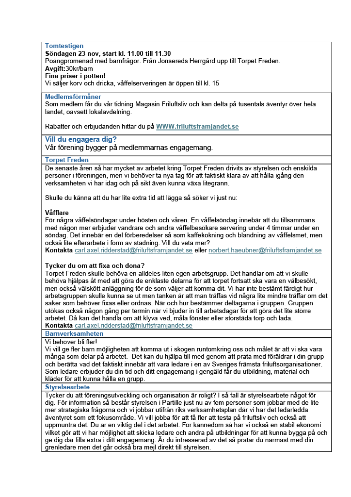 OBS! Tomtestigens starttid är 10.30 - 11.00 (inte 11.00-11.30)